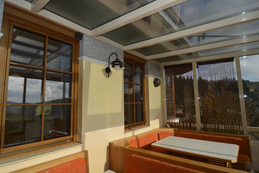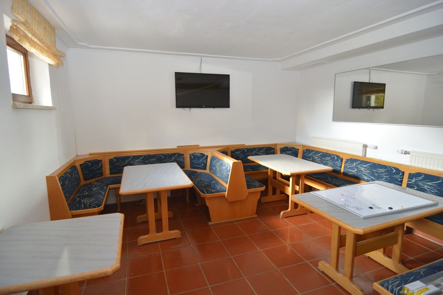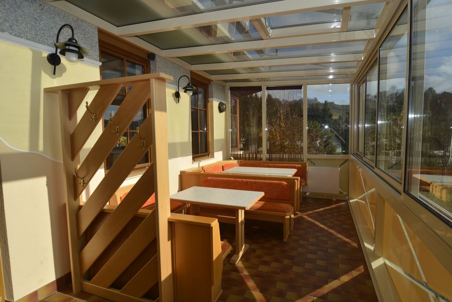 Es teilt sich in einen großzügigen Gastraum mit Wintergarten, eine Küche sowie diverse Lager- und Kellerräume.